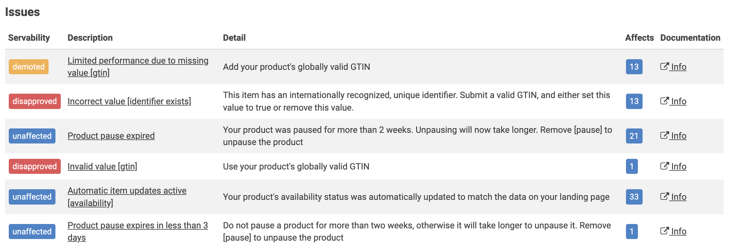 This tool enables you to monitor higher level account issues and which products have issues according to GMC and send out email alerts to staff plus to be able to view them on a summary screen within Admin which is easier to access rather than logging into GMC. The issues shown are a direct reflection of how GMC reports them.