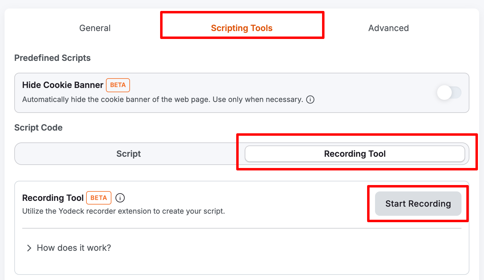 - Use the Recording tool to record your login as the Yodeck report-only user