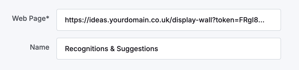 - Enter the domain + token URL generated above, plus a name, for example: